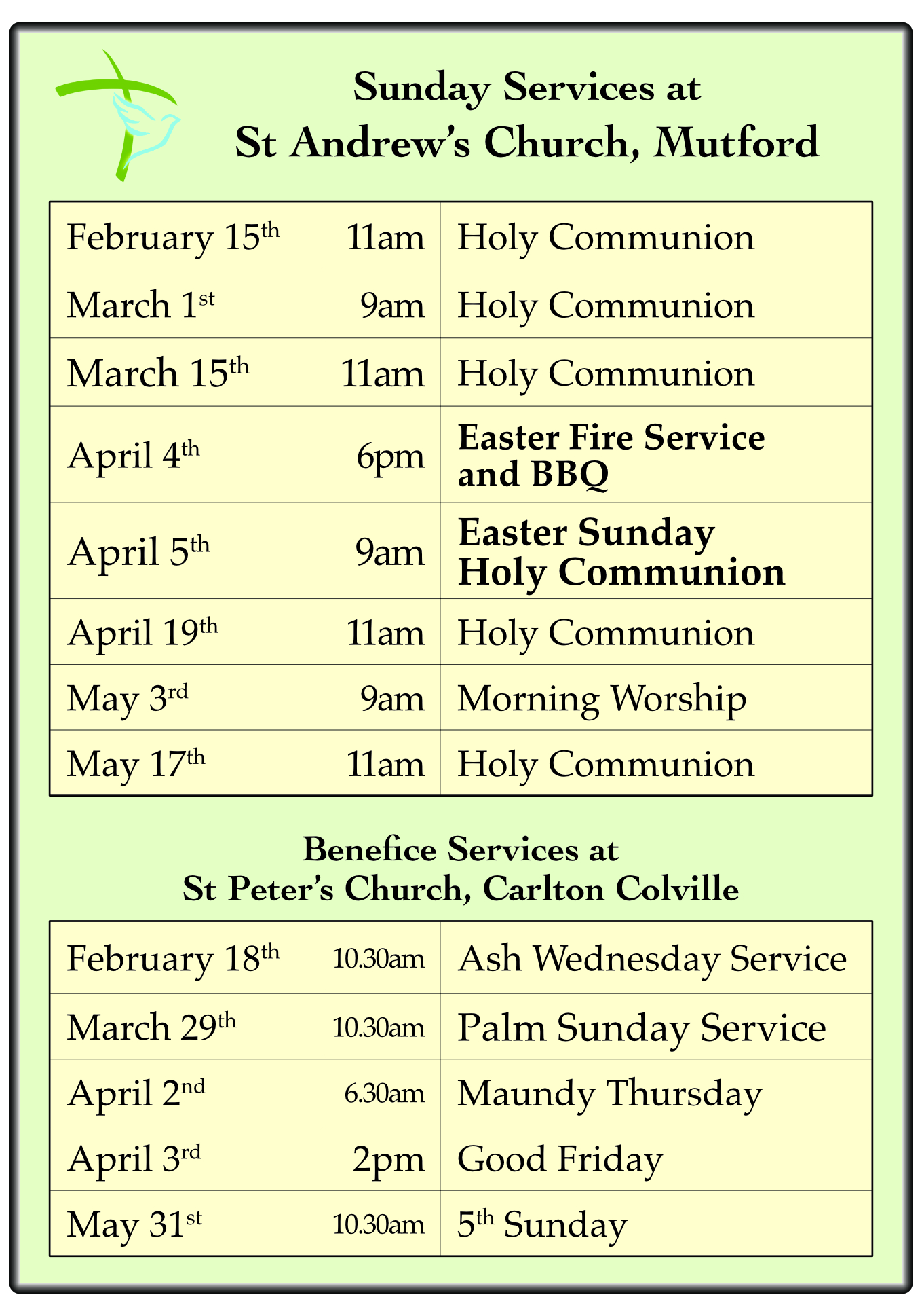 A service of Morning Prayer led by a lay minister will replace a service if the Rector is unavailable to take a Sunday service.